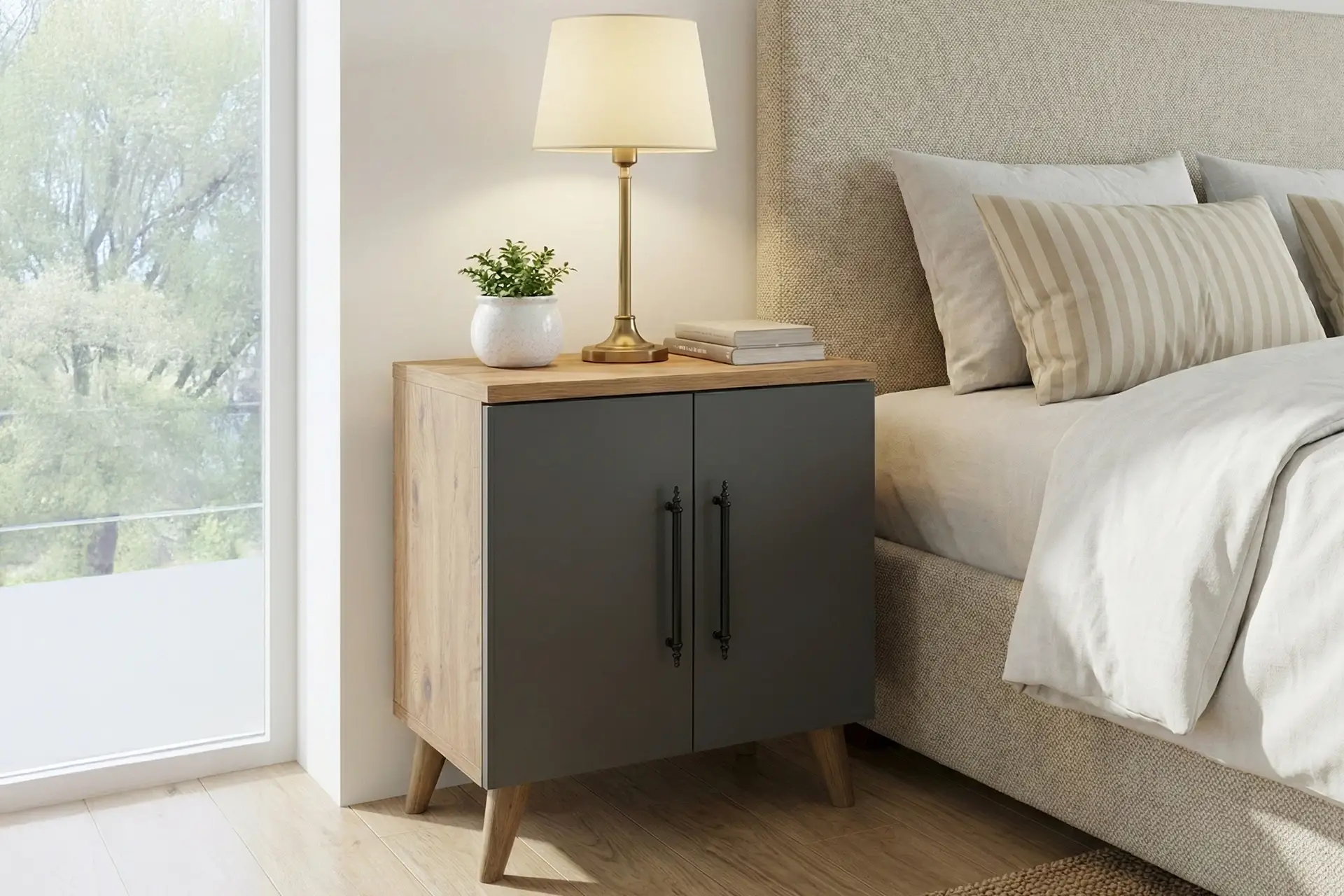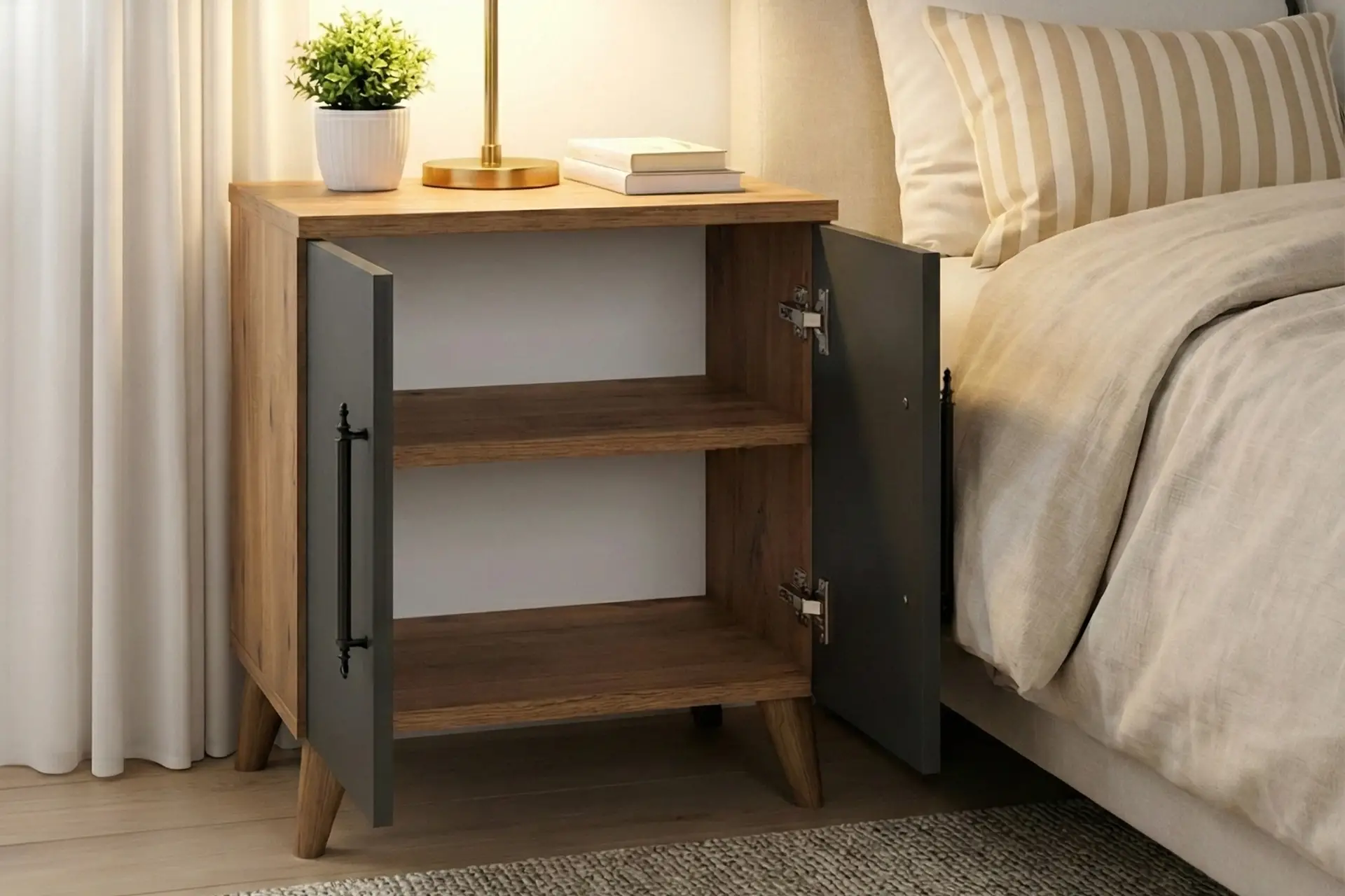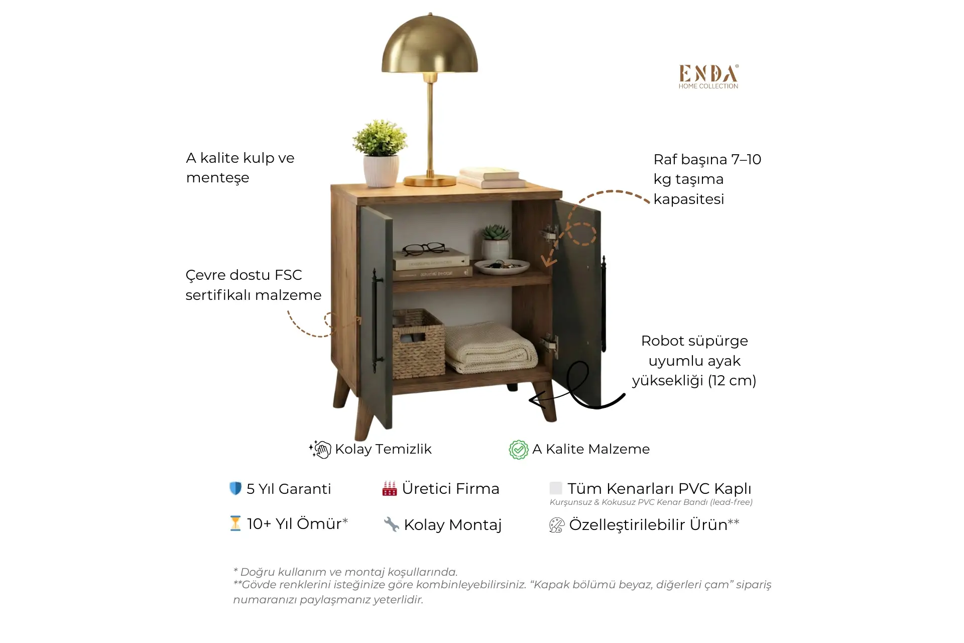 Lumen 2 Kapaklı Raflı Klasik Komodin – Antrasit & Atlantik Çam