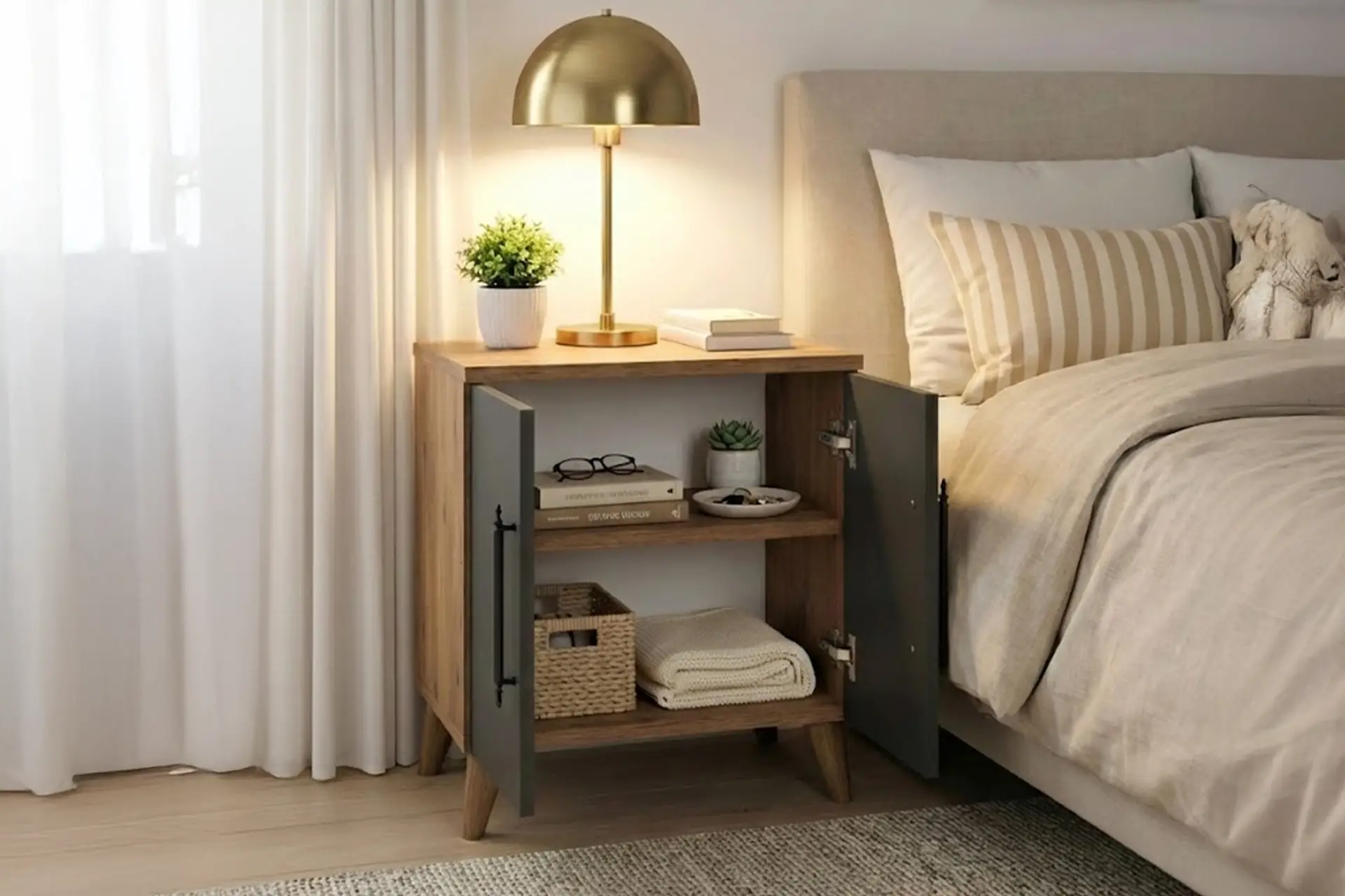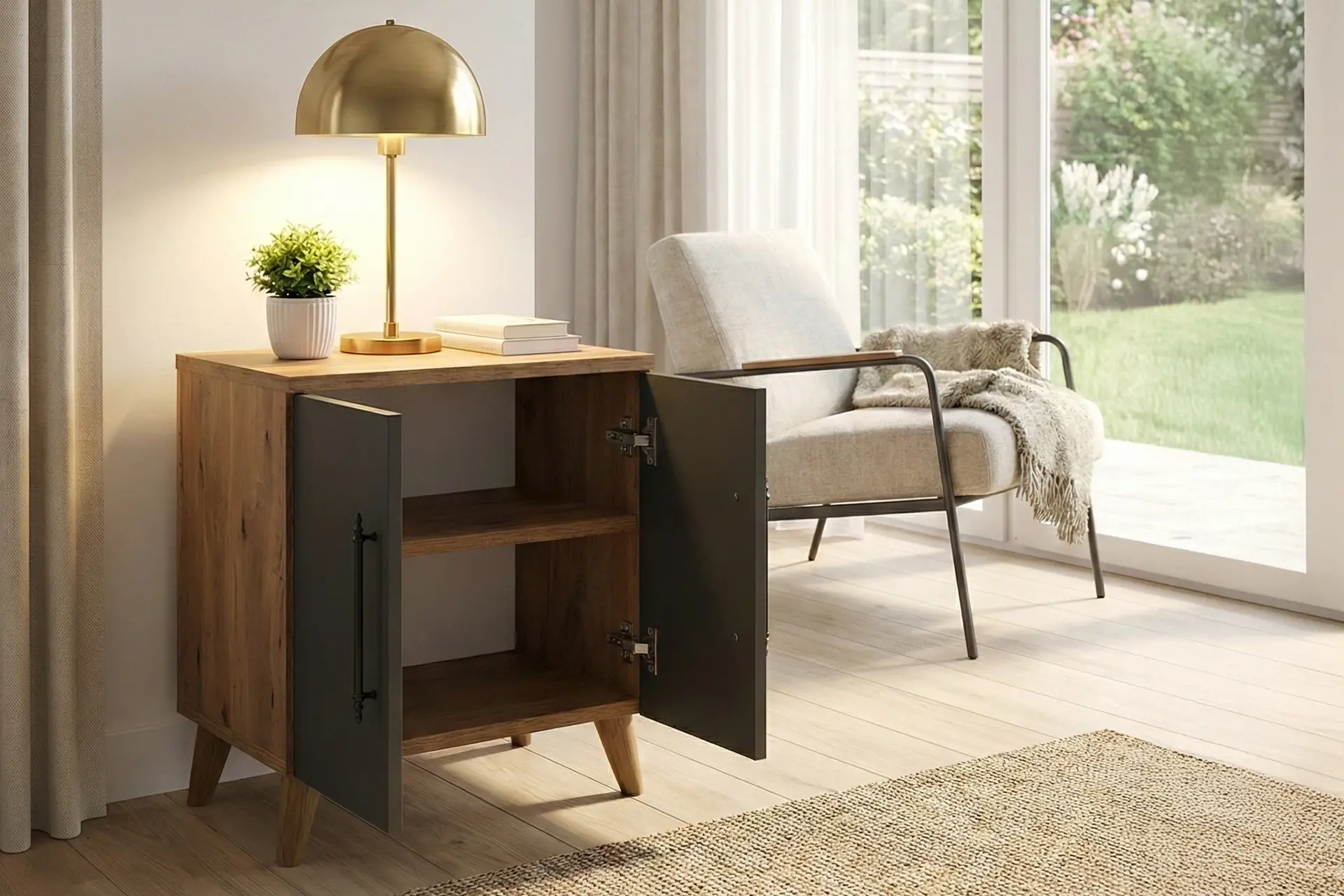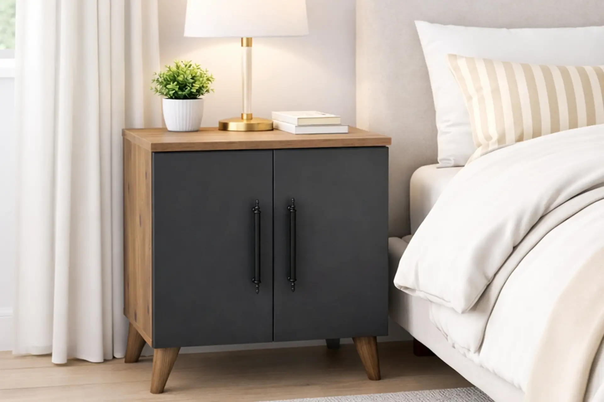 Lumen 2 Kapaklı Raflı Klasik Komodin – Antrasit & Atlantik Çam
