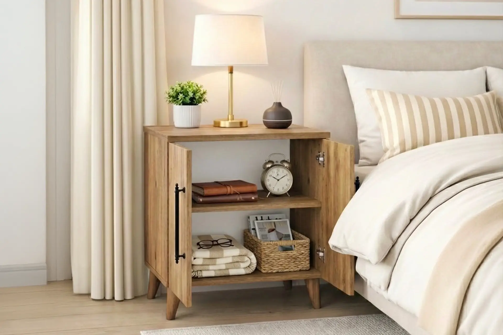 Lumen 2 Kapaklı Raflı Klasik Komodin – Atlantik Çam
