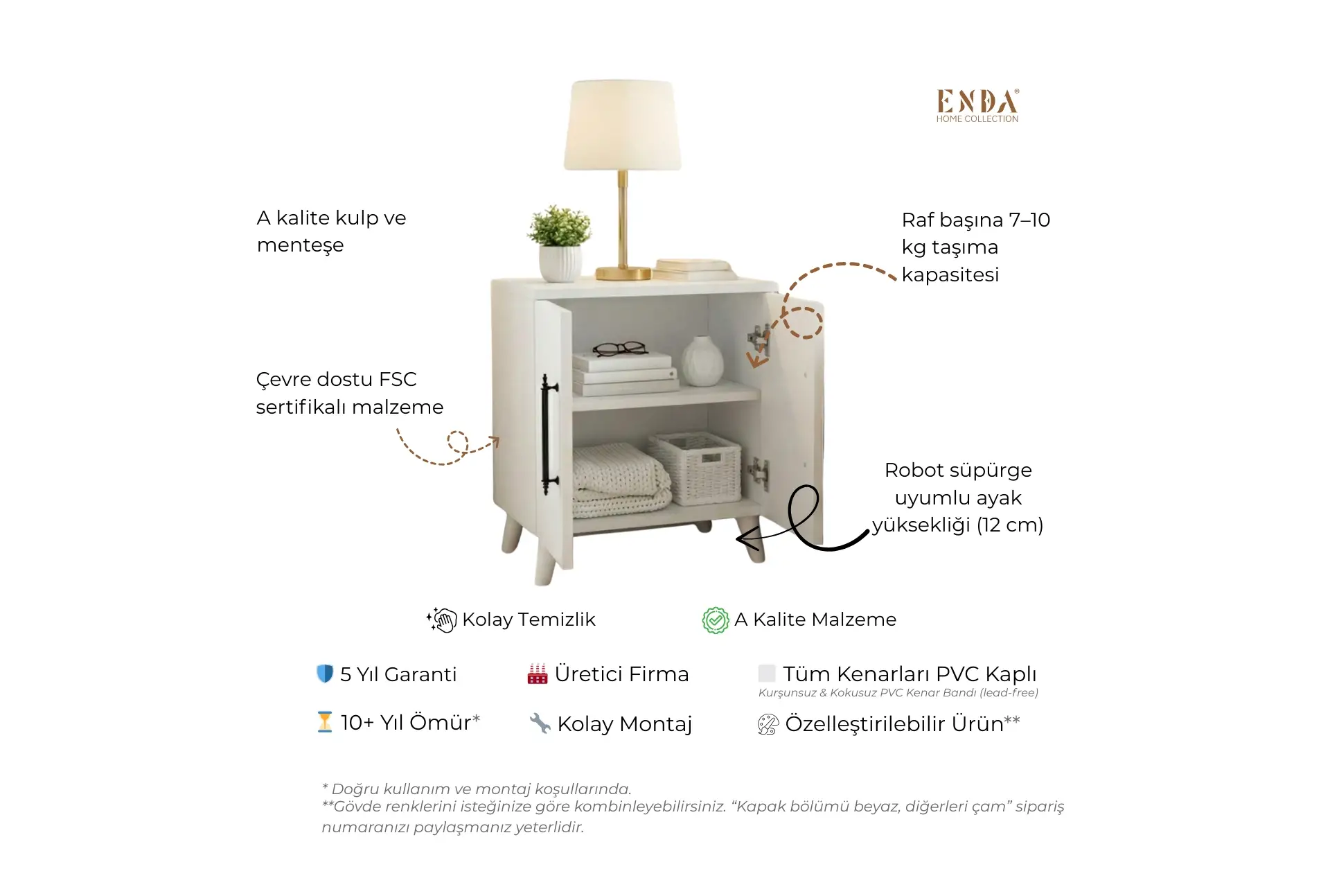 5 Yıl Garanti10+ Yıl Ömür*Kurşunsuz & Kokusuz PVC Kenar BandıKolay Montaj12 cm Ayak • Robot Süpürge Uyumlu